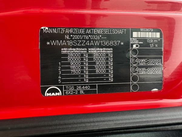| Specialities | TGS 26.440 6X2-4 BL + HIAB 322 EP-5 HIDUO + REMOTE + EURO 5 + 6x2 steering |