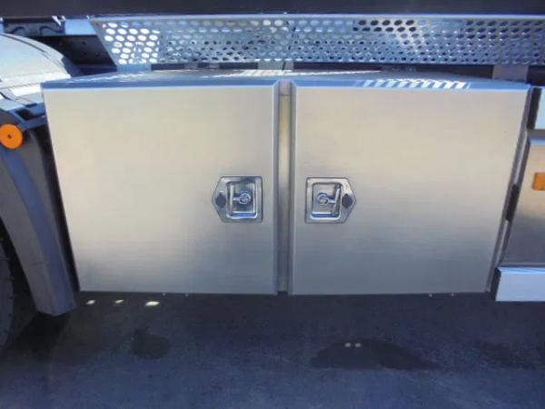 Achteras 1: Bandenmaat: 315/70R22.5; Dubbellucht; Max. aslast: 11500 kg; Bandenprofiel linksbinnen: 100%; Bandenprofiel linksbuiten: 100%; Bandenprofiel rechtsbinnen: 100%; Bandenprofiel rechtsbuiten: 100%; Reductie: naafreductie; Vering: luchtvering
