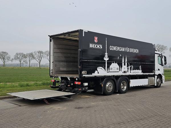 Aantal Assen: 3, Configuratie: 6x2, Eigen gewicht: 11330 kg, Totaalgewicht: 26000 kg, Diesel inhoud totaal: 390 liter, Aanhangwagen kopp., Dikte koppelingspen: 40 DIN, Schotel type: Fixed, Aantal sperren: 1, Vering type: luchtvering, Soort cabine: Korte cabine, Cruise control, Tachograaf, Digitale tachograaf, Airconditioning, Elektrische ramen, Elektrische spiegels, Radio/cassette, Kleur: Wit, Verwarmde spiegels, Soort lampen: Halogeen, Laneassist, Stoelverwarming, Bluetooth, Zwaailichten, Motorvermogen: 290 Kw (389 Hp), Brandstof: diesel, Euro: 6, Soort versnellingsbak: Telligent, Merk versnellingsbak: Mercedes Benz, Versnellingen: 12, Stuurbekrachtiging, ABS (Anti Blokkeer Systeem), ASR (Anti Slip Regeling), Start accu, systeemtype: ., Centrale vergrendeling, Stoelopstelling: 1+1, Stoelbekleding: leder, Stoel verstelling: Handmatig, Laadklep, Soort laadklep: achtersluit klep, Capaciteit laadklep: 2000 kg, Merk laadklep: Bar cargolift, Materiaal laadklep: aluminium, Plateau grootte: 225x252, Getränke,6x2*4