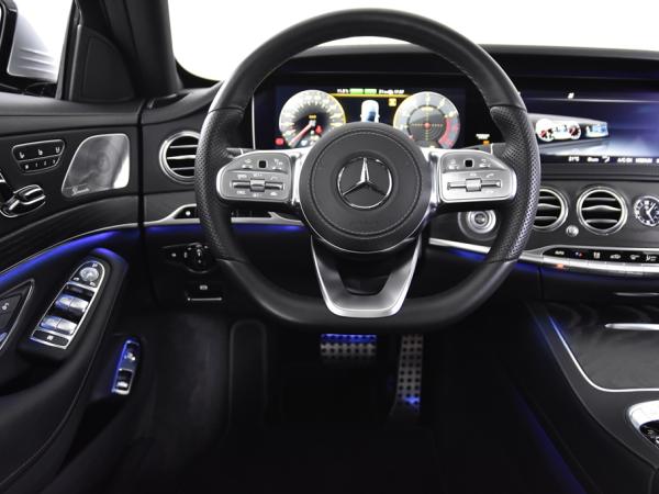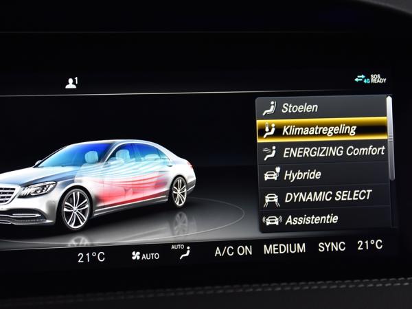 Hij is stijlvol en comfortabel, deze Mercedes-Benz S-klasse, en hij is ontworpen om jou veilig en comfortabel te laten rijden onder alle omstandigheden. Met de amg styling laat dit model zich van zijn meest dynamische kant zien. De krachtige hybridemotor staat garant voor uitstekende prestaties. Klinkers of asfalt? Je merkt het verschil niet door de luchtvering. Lederen bekleding is een smaakvolle en comfortverhogende optie. De verwarmbare voorstoelen inclusief massagefunctie benadrukken nog maar eens dat we hier te maken hebben met een regelrechte verwenauto. Zit je goed? De stoelen zijn eenvoudig instelbaar dankzij de elektrische bediening met geheugen. Het interieur baadt in een zee van licht met het elektrische bediende glazen panoramadak. De bagageruimte is toegankelijk via een comfortverhogende elektrische achterklep. Bij de zeer complete uitrusting van deze auto behoren ook 20 inch lichtmetalen velgen, elektrische zonnerollo voor de achterruit, dynamisch onderstel, sportuitlaat, adaptief dempingsysteem, set winterbanden, warmtewerend glas, zwarte hemelbekleding, LED-achterlichten, snelheidsbegrenzer, metallic lak, elektrisch inklapbare buitenspiegels en LED-dagrijverlichting.