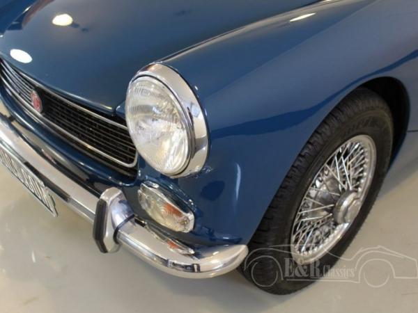 This ‘Round Wheel Arch’ MG Midget was delivered on August 28th 1972 and the car is in Holland since 1998. Here the car was restored by a MG fan and hobbyist. Both the in- and outside are in beautiful condition. The car has Teal Blue paint, combined with chrome wire wheels and a black leather interior, a very nice combination on this British classic car. The 4 cyl engine is connected to the 4 speed manual gearbox. This is a great car to drive thanks to the compactness and low weight.