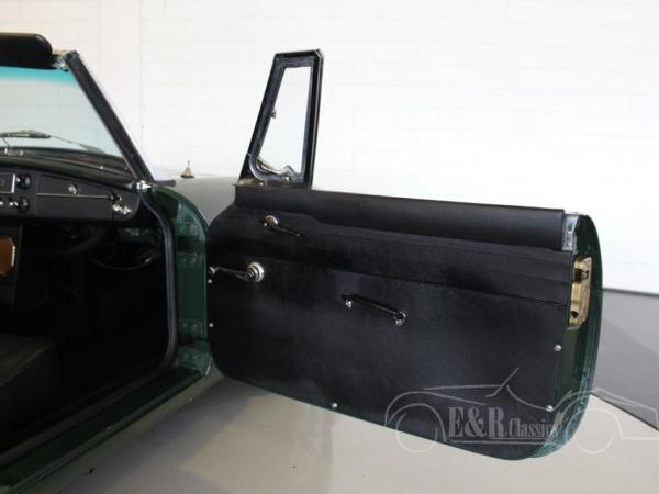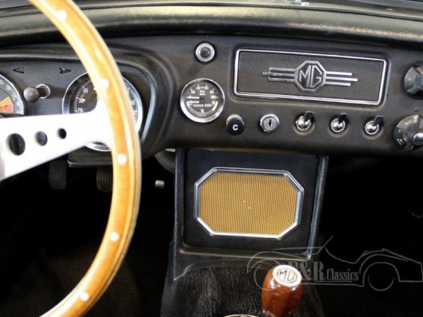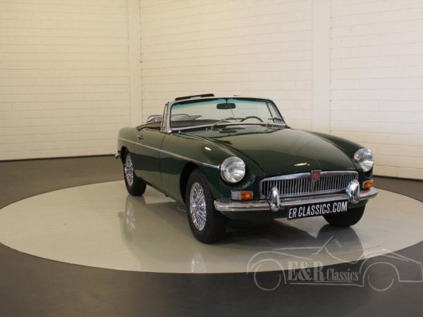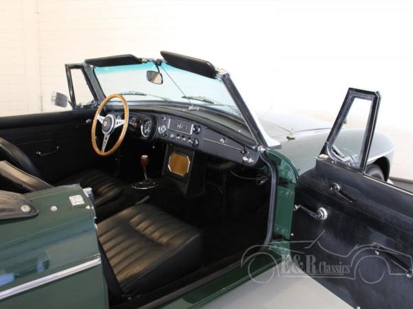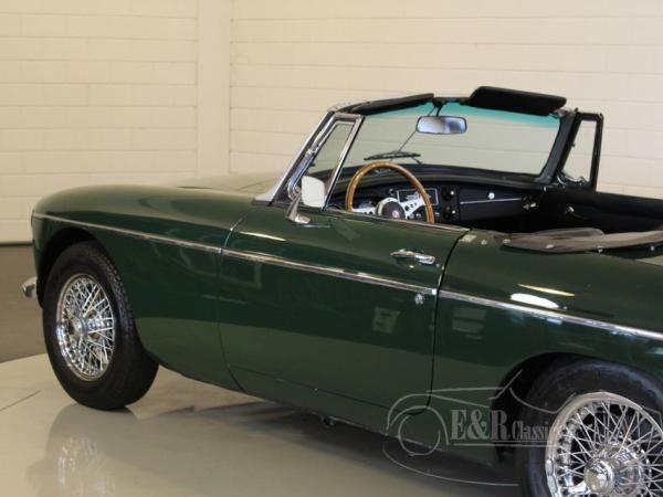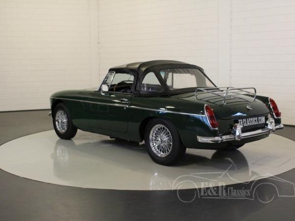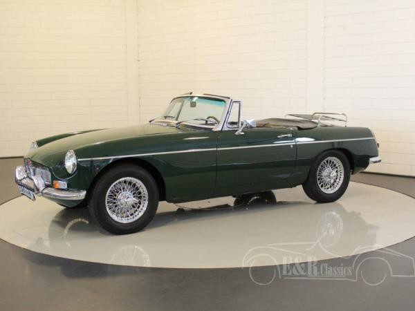 This is a 1964 MGB cabriolet with the beautiful classic steel dashboard. This MGB is in very beautiful condition. The car has paint in colour British Racing Green with black interior. This car also has chrome wire wheels, wooden steering wheel and a chrome luggage rack.