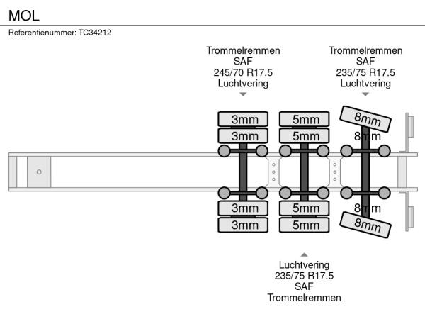 Achteras 3: Bandenmaat: 235/75 R17.5; Dubbellucht; Meesturend; Bandenprofiel linksbinnen: 8 mm; Bandenprofiel linksbuiten: 8 mm; Bandenprofiel rechtsbinnen: 8 mm; Bandenprofiel rechtsbuiten: 8 mm