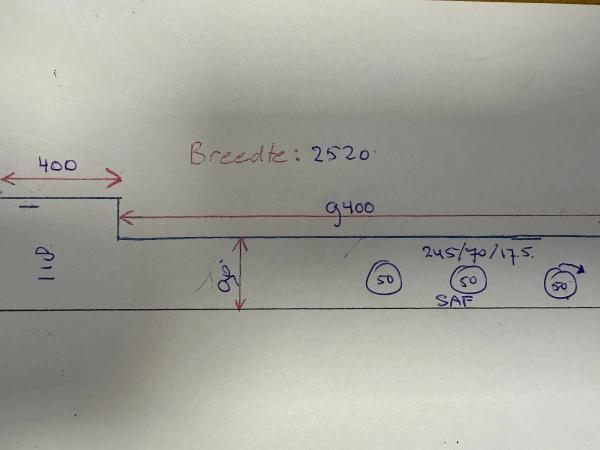 Achteras 1: Bandenmaat: 245X70X17.5; Dubbellucht; Max. aslast: 9000 kg; Bandenprofiel linksbinnen: 50%; Bandenprofiel linksbuiten: 50%; Bandenprofiel rechtsbinnen: 50%; Bandenprofiel rechtsbuiten: 50%