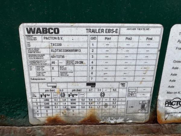 Achteras 1: Max. aslast: 9000 kg; Bandenprofiel links: 20%; Bandenprofiel rechts: 20%