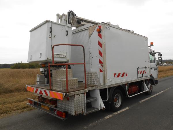 NACELLE COMILEV-SODALEM EN 150 TPC à bras télescopique et pendulaire – Hauteur de travail maxi 15 m. / portée 8 m. - Panier fibre 265kg - 4 béquilles stabilisatrices - Compartiment FOURGON à ouverture arrière avec aménagement étagères, établi bois et armoire métallique - Cabine 2 places - Gyrophare + tri flash - Boite de vitesse manuelle 6 rapports avants - Suspension mécanique - Réservoir GO acier 130 litres - Pneus 215/75R7.5 a 50% d'usure - Véhicule fonctionnel / entretien suivi - 7770 heures - Contrôle technique périmé (A3434)