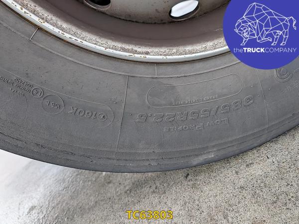 Vooras: Bandenmaat: 385/55 R22.5; Meesturend; Bandenprofiel links: 10 mm; Bandenprofiel rechts: 11 mm