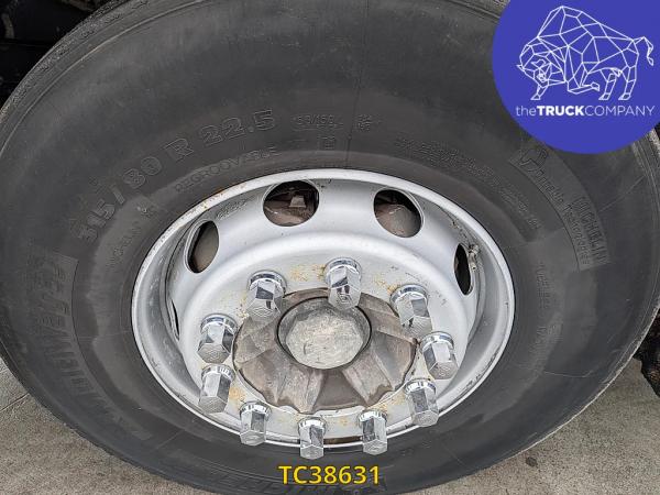 Vooras: Bandenmaat: 315/80 R22.5; Meesturend; Bandenprofiel links: 7 mm; Bandenprofiel rechts: 5 mm; Vering: bladvering