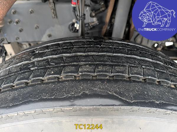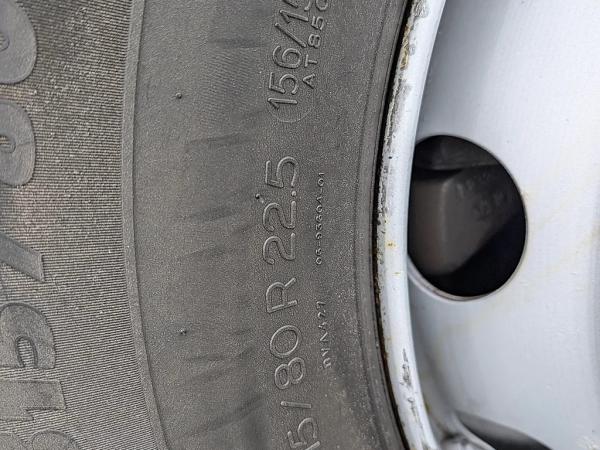 Vooras: Bandenmaat: 315/80 R22.5; Meesturend; Bandenprofiel links: 5 mm; Bandenprofiel rechts: 9 mm; Vering: bladvering
