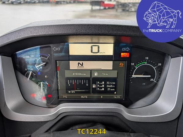 Achteras: Bandenmaat: 315/70 R22.5; Dubbellucht; Bandenprofiel linksbinnen: 7 mm; Bandenprofiel linksbuiten: 7 mm; Bandenprofiel rechtsbinnen: 7 mm; Bandenprofiel rechtsbuiten: 9 mm; Vering: luchtvering