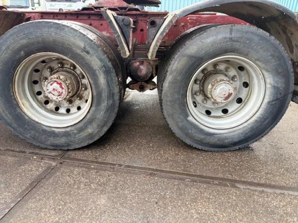 Achteras 2: Bandenmaat: 295/80R22,5; Dubbellucht; Differentieelslot; Max. aslast: 13000 kg; Bandenprofiel linksbinnen: 30%; Bandenprofiel linksbuiten: 30%; Bandenprofiel rechtsbinnen: 30%; Bandenprofiel rechtsbuiten: 30%; Reductie: naafreductie