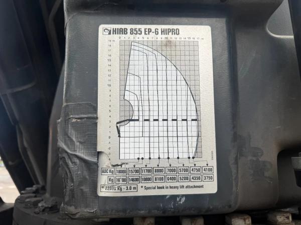 Kraan: HIAB 855EP-6 HIPRO, bouwjaar 2013, achter de cabine