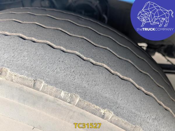 Achteras: Bandenmaat: 315/80 R22.5; Dubbellucht; Bandenprofiel linksbinnen: 5 mm; Bandenprofiel linksbuiten: 5 mm; Bandenprofiel rechtsbinnen: 3 mm; Bandenprofiel rechtsbuiten: 3 mm; Vering: luchtvering