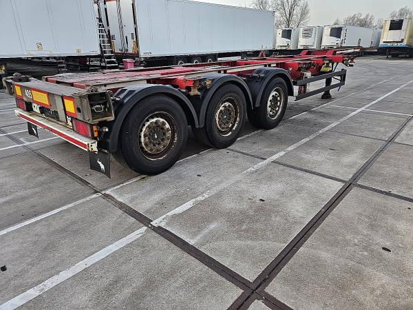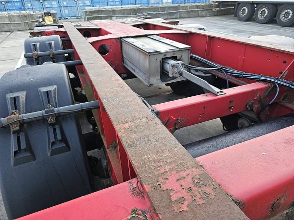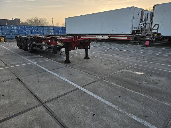 Aantal Assen: 3, Eigen gewicht: 5600 kg, Totaalgewicht: 39000 kg, Soort chassis: Volledig chassis, Materiaal chassis: staal, Kingpin afmeting: 2 inch, Vering type: vollucht, ABS (Anti Blokkeer Systeem), EBS, Bouwjaar opbouw: 2012, Twistlocks: 2x20 + 1x30 + 1x40 + 1x45 high cube, Uitschuifbare chassis: Voorkant / achter, Merk as: SCHMITZ