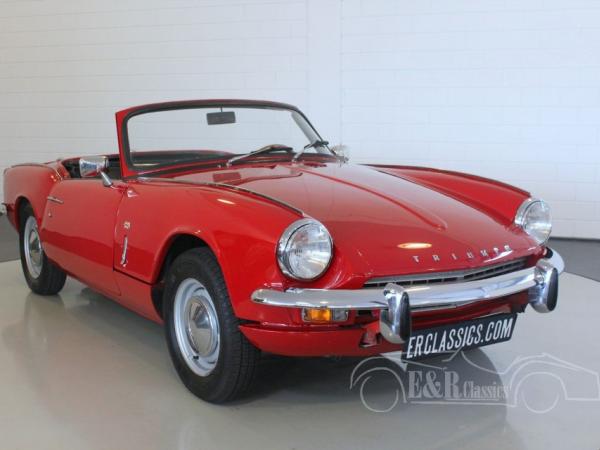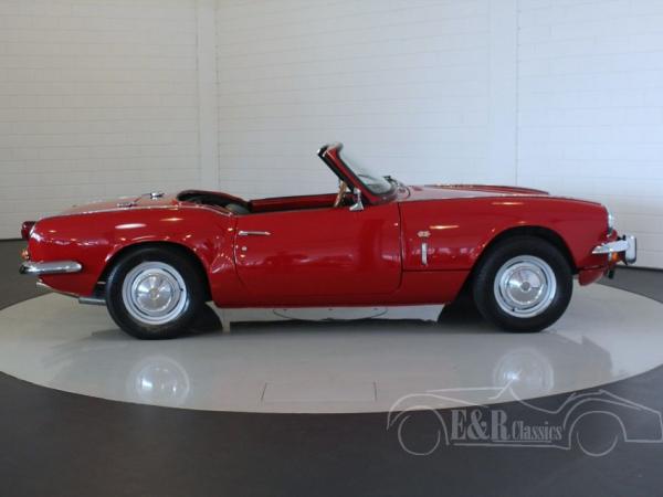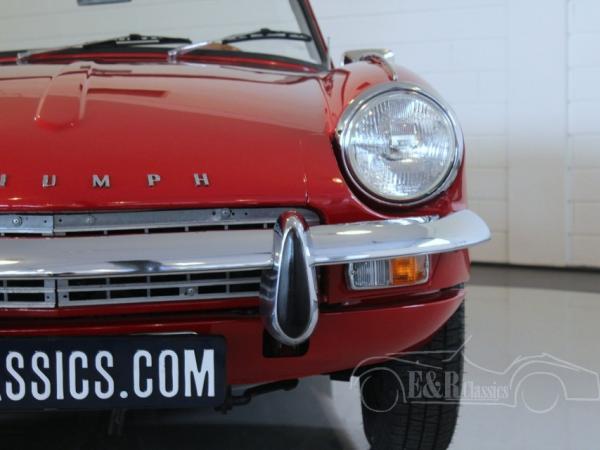 Since 1967 the Spitfire MK3 was introduced. This beautiful Triumph Spitfire MK3 was delivered in 1968 with Signal Red paint. This red colour with the chrome is a beautiful combination. The interior of the Triumph has black leather with white piping. Dashboard has wooden details. This Triumph has the original and fully revises 1296CC, 4 cyl, 83HP engine. This marvellous Triumph Spitfire MK3 is ready for a lot of driving fun.