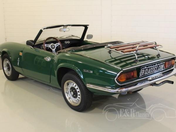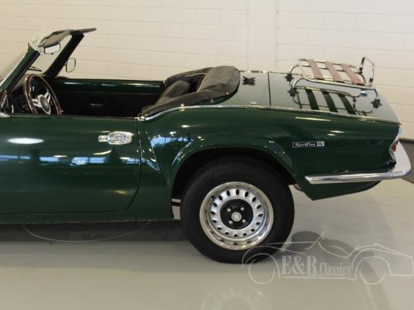 This is a 1973 Triumph Spitfire in colour British Racing Green with new black leather seats. Optically and technically in more than excellent condition. The car also has overdrive, extra oil cooler and chrome luggage rack.
