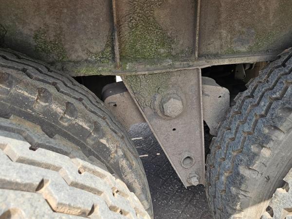 La remorque est équipée de ressorts à lames en acier et d'essieux BPW avec freins à tambour. La configuration à essieux larges assure une bonne stabilité sur la route.