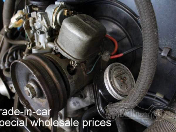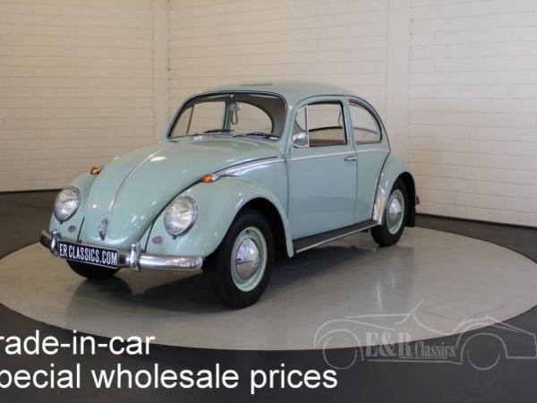 This is a 1965 VW Beetle with Bahama Blue paint. The Volkswagen drives, brakes and shifts gear. The car has cloth interior with a metal dashboard in the colour of the paint. The car has some traces of use. So a very nice driver’s car.