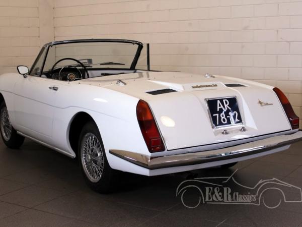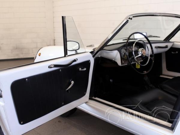 The Autobianchi Stellina is a small Spider, based on the chassis of the Fiat 600D. The car has a unique glassfiber body built on a steel chassis. It was the first Italian car with a glassfiber body. Only 502 were built. This is a 1963 Autobianchi Stellina, in good and beautiful condition. The body has white paint combined with wire wheels. The car has black leatherette interior. It has the watercooled 767 CC 4 cyl engine in the back with a 4 speed manual gearbox. Drives great. So a beautiful and very rare Italian convertible.