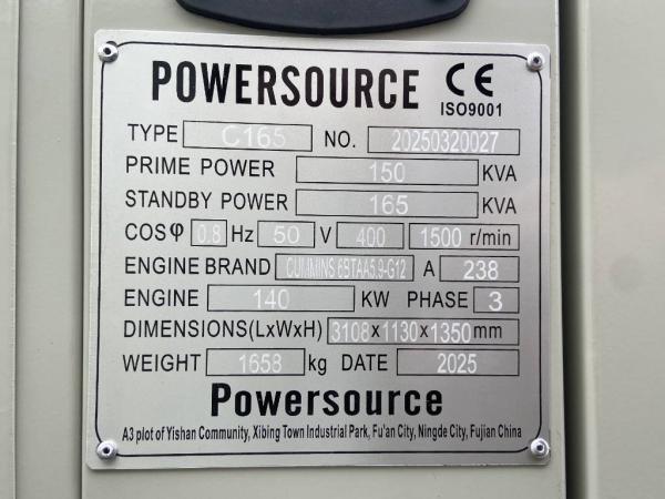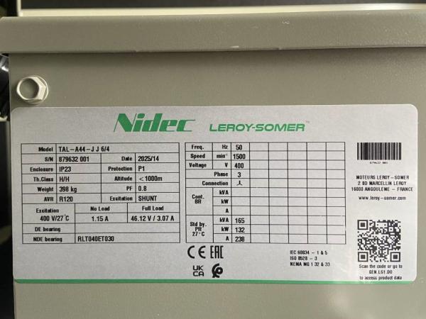 Generatorvermogen: 165 kVA