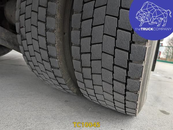 Achteras: Dubbellucht; Bandenprofiel linksbinnen: 10 mm; Bandenprofiel linksbuiten: 8 mm; Bandenprofiel rechtsbinnen: 7 mm; Bandenprofiel rechtsbuiten: 4 mm; Vering: luchtvering