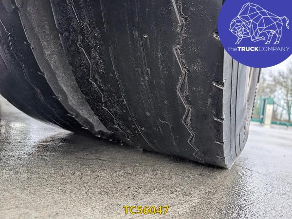 Vooras: Bandenmaat: 385/65 R22.5; Meesturend; Bandenprofiel links: 6 mm; Bandenprofiel rechts: 7 mm; Vering: bladvering