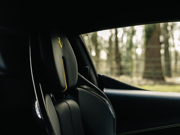 The Alcantara dashboard webbing and passenger compartment inserts further elevate the interior's sophistication, while the Cavallino stitched in Giallo on the headrest adds a touch of exclusivity.