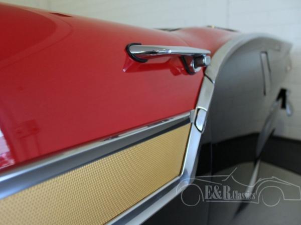 In 1957 this was the topmodel of the Ford Motor Company. The Ford Fairlane 500 Skyliner has the revolutionary retractable hardtop, which stores itself completely in the trunk. The impressive exterior is done in the marvellous colourcombination red/black with beautiful chrome. The interior has brown/white vinyl upholstery and the original dashboard in the colour of the car with the original radio. The Ford V8 engine is connected to the automatic gearbox and drives great. The Ford also has power steering which makes driving even more pleasant. This perfect driving Ford Skyliner convertible is a car for the real enthusiasts.