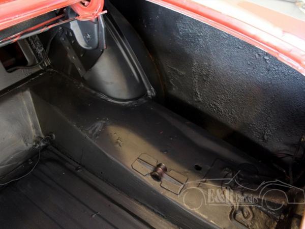This is a 1965 Ford Mustang convertible V8, delivered in red paint with a black Powertop. The car is in neat driver’s condition with traces of use and marks in the paint. The car has black vinyl Pony interieur and the original dashboard. The Mustang has the 289CUI V8 engine and automatic gearbox and drives great.