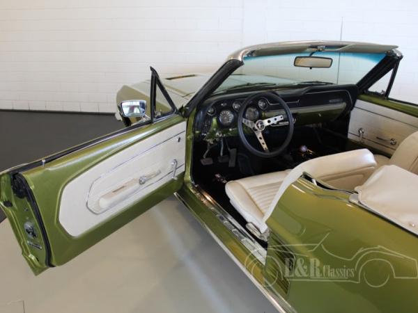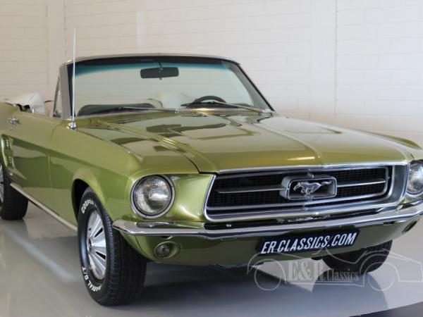 Ford has produced the Ford Mustang since 1964 and is the most popular model since then. The Mustang came in many varieties, such as the convertible. This is a 1967 Ford Mustang Convertible. The car has beautiful green metallic paint and a white interior, which is a great combination. This Ford has the original 4736 CC, V8, 200 HP engine and a manual gearbox. The car is in very good condition.