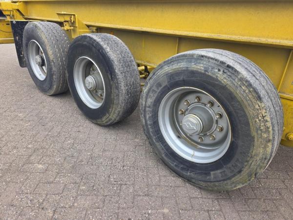 Deze oplegger is uitgevoerd met 3 assen van het merk Fruehauf, bladvering en trommelremmen, wat zorgt voor een eenvoudige onderhoudsvriendelijke techniek. Dankzij de twistlocks is het chassis geschikt voor het veilig vervoeren van containers.