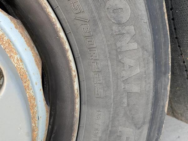 Vooras: Bandenmaat: 315/80 R22.5; Meesturend; Bandenprofiel links: 8 mm; Bandenprofiel rechts: 9 mm; Vering: bladvering