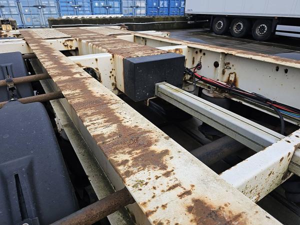 Aantal Assen: 3, Eigen gewicht: 5440 kg, Totaalgewicht: 38000 kg, Soort chassis: Volledig chassis, Materiaal chassis: staal, Kingpin afmeting: 2 inch, Vering type: luchtvering, ABS (Anti Blokkeer Systeem), EBS, Bouwjaar opbouw: 2005, Twistlocks: 2x20 + 1x30 + 1x40 + 1x45 high cube, Uitschuifbare chassis: achter, Merk as: SAF