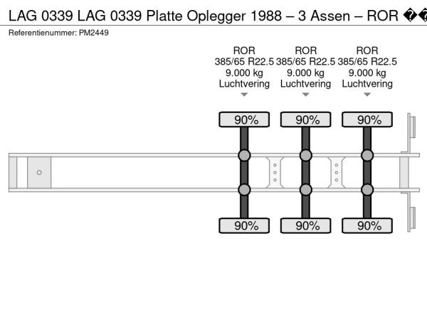 LAG (1988) LAG 0339 LAG 0339 Platte Oplegger 1988 – 3 Assen – ROR – Trommelremmen – Luchtvering – 39 Ton PM2449