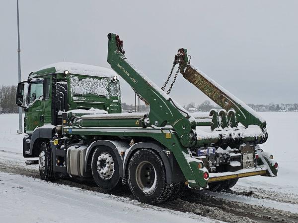 Aantal Assen: 3, Configuratie: 6x2, Eigen gewicht: 12200 kg, Totaalgewicht: 26000 kg, Diesel inhoud totaal: 260 liter, Aanhangwagen kopp., Dikte koppelingspen: 40 DIN, Schotel type: Fixed, Aantal sperren: 1, Lichtmetalen velgen, Centrale smering, Vering type: luchtvering, Soort cabine: Korte cabine, Cruise control, Tachograaf, Digitale tachograaf, Airconditioning, Standkachel, Elektrische ramen, Elektrische spiegels, Radio/cassette, Kleur: Groen, Verwarmde spiegels, Achteruitrij camera, Soort lampen: Halogeen, Laneassist, Climatecontrol, Stoelverwarming, Bluetooth, Motorvermogen: 338 Kw (453 Hp), Brandstof: diesel, Euro: 6, Soort versnellingsbak: AS-tronic, Merk versnellingsbak: ZF, Versnellingen: 12, Extra remsysteem, Merk retarder: Intarder, Stuurbekrachtiging, ABS (Anti Blokkeer Systeem), ASR (Anti Slip Regeling), PTO, PTO soort: 1, Start accu, systeemtype: Meiller Ak16, Pomp, Centrale vergrendeling, Stoelopstelling: 1+1, Stoelbekleding: Stoelhoes, Stoel verstelling: Handmatig, Meiller AK 16 NT