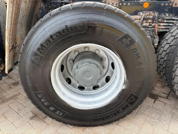 Hinterachse 1: Doppelbereift; Reduzierung: Ausenplanetenachsen; Bremsen: Scheibenbremsen; Federung: Blattfederung