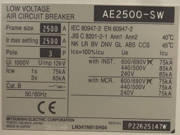 MITSUBISHI (2023) Mitsubishi Circuit breaker 2500A - AE2500-SW 3P - DPX-12648
