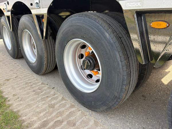 Construction & Chassis: The chassis is a heavy-duty I-type frame made of fully welded S355 steel with a UPE 240 outer frame for extra durability. The chassis is welded using an automatic ARC-submerged process, and the superstructure is welded with robot welding. The vehicle is equipped with 4 x 16-ton Özgül drum-brake axles, mechanical leaf spring suspension (12–14 leaves), a single-position EU-approved 2” kingpin (Çayırova Brand), 16+1 12 R 22.5 tires on 9.00 x 22.5 steel rims, and a mechanically operated two-speed landing gear (Gos Brand).