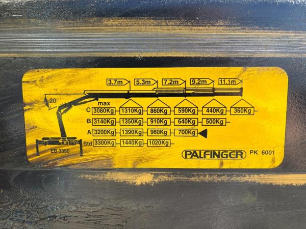 Kraan: PALFINGER PK6001, bouwjaar 2003, achter op het chassis