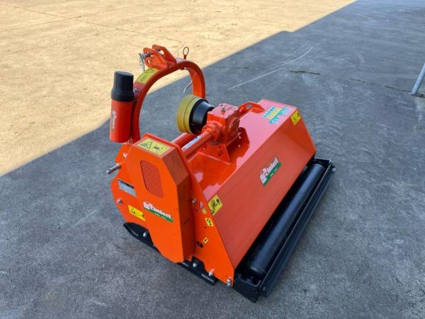 Nieuwe Rinieri TRF 115 klepelmaaier voor intensief hakselen van snoeihout tot Ø 5–6 cm. Robuust gebouwd voor professioneel gebruik in boomgaarden, parken, strokenbeheer en stellingenteelt.