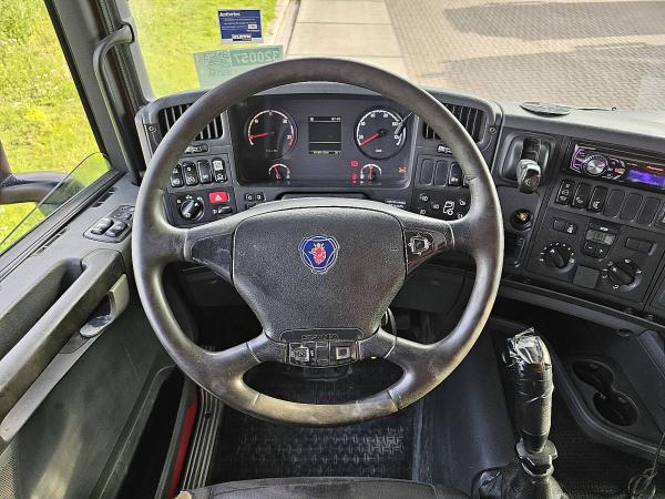 Aantal Assen: 4, Configuratie: 8x4, Eigen gewicht: 17488 kg, Totaalgewicht: 32000 kg, Diesel inhoud totaal: 320 liter, Aantal sperren: 2, Soort cabine: Korte cabine, Cruise control, Tachograaf, Digitale tachograaf, Airconditioning, Elektrische ramen, Elektrische spiegels, Kleur: Rood, Verwarmde spiegels, Soort lampen: Halogeen, Snelheidsbegrenzing, Climatecontrol, Stoelverwarming, Zwaailichten, Motorvermogen: 294 Kw (394 Hp), Brandstof: diesel, Euro: 5, Soort versnellingsbak: Handgeschakeld, Merk versnellingsbak: Scania, Snelheidsbegrenzing, Versnellingen: 12, Koppelingspedaal, Stuurbekrachtiging, ABS (Anti Blokkeer Systeem), ASR (Anti Slip Regeling), PTO, PTO soort: 1, Start accu, Aantal zijden: 1 zijdig kippend, Pomp, Centrale vergrendeling, Stoelopstelling: 1+1, Stoelbekleding: stof, Stoel verstelling: Handmatig, Kraan, Kraan merk: Hiab 211 EP-3, Bouwjaar kraan: 2013, Capaciteit kraan: 21, Max. belasting: 1540 kg bij 10,3 m., Aantal steunpoten: 2, CE goedgekeurd, Positie bediening: beide, Positie kraan: achter de cabine, Hydr. uitschuifbaar: 3 keer, Extra hydr. Aansl.: 2, Rotator