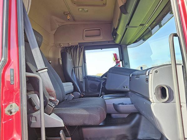 Aantal Assen: 2, Configuratie: 4x2, Eigen gewicht: 8882 kg, Totaalgewicht: 21000 kg, Diesel inhoud totaal: 1200 liter, 2e dieseltank, Schotelhoogte: 123 cm, Schotel type: Fixed, Aantal sperren: 1, Lichtmetalen velgen, Vering type: vollucht, Soort cabine: Highline, Cruise control, Tachograaf, Digitale tachograaf, Airconditioning, Standkachel, Elektrische ramen, Elektrische spiegels, Kleur: Rood, Metallic, Verwarmde spiegels, Soort lampen: Halogeen, Climatecontrol, Motorvermogen: 368 Kw (493 Hp), Brandstof: diesel, Euro: 5, Soort versnellingsbak: Handgeschakeld, Merk versnellingsbak: Scania, Versnellingen: 12, Koppelingspedaal, Extra remsysteem, Merk retarder: Scania, Stuurbekrachtiging, ABS (Anti Blokkeer Systeem), ASR (Anti Slip Regeling), Start accu, Centrale vergrendeling, Stoelopstelling: 1+1, Stoelbekleding: stof, Stoel verstelling: Handmatig, Manual gearbox,full airsusp