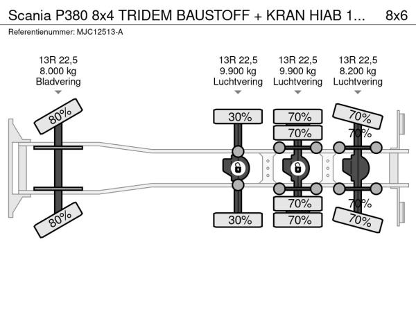 SCANIA (2005) Scania P380 8x4 TRIDEM BAUSTOFF + KRAN HIAB 166 ES-5 HIPRO - ROTATOR + RADIO - 7m60 PRITSCHE - MANUAL - LIFT + LENKACHSE MJC12513-A