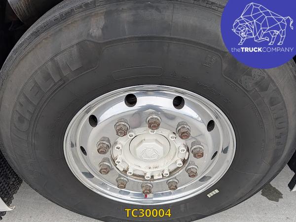 Vooras: Bandenmaat: 385/65 R22.5; Meesturend; Bandenprofiel links: 12 mm; Bandenprofiel rechts: 13 mm