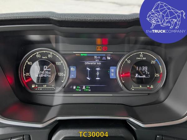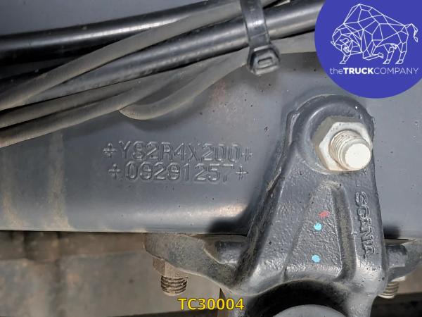 Achteras: Bandenmaat: 315/80 R22.5; Dubbellucht; Bandenprofiel linksbinnen: 12 mm; Bandenprofiel linksbuiten: 8 mm; Bandenprofiel rechtsbinnen: 11 mm; Bandenprofiel rechtsbuiten: 10 mm