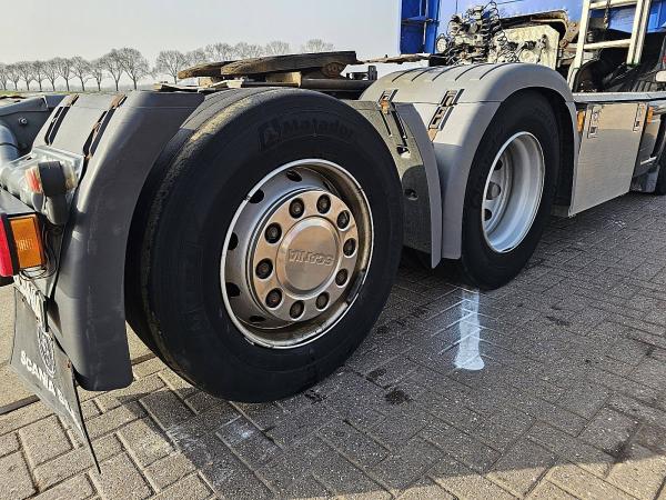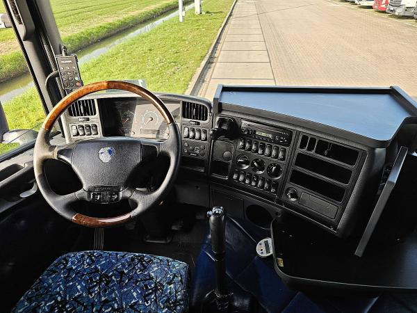 Aantal Assen: 3, Configuratie: 6x2, Eigen gewicht: 8800 kg, Totaalgewicht: 24000 kg, Diesel inhoud totaal: 550 liter, Schotelhoogte: 116 cm, Schotel type: Slide, Aantal sperren: 1, Soort cabine: Topline, Cruise control, Tachograaf, Airconditioning, Standkachel, Elektrische ramen, Elektrische spiegels, Radio/cassette, Kleur: Meerkleurig, Verwarmde spiegels, Soort lampen: Halogeen, Stoelverwarming, Motorvermogen: 368 Kw (493 Hp), Brandstof: diesel, Euro: 3, Soort versnellingsbak: Handgeschakeld, Merk versnellingsbak: Scania, Versnellingen: 12, Koppelingspedaal, Stuurbekrachtiging, ABS (Anti Blokkeer Systeem), Start accu, Centrale vergrendeling, Stoelopstelling: 1+1, Stoelbekleding: stof, Stoel verstelling: Handmatig
