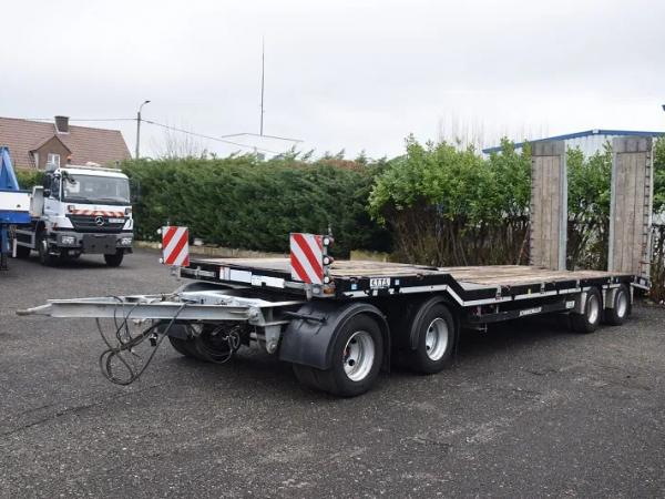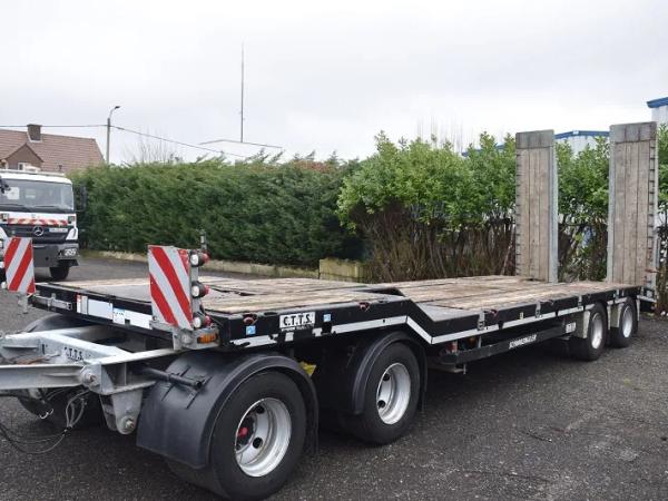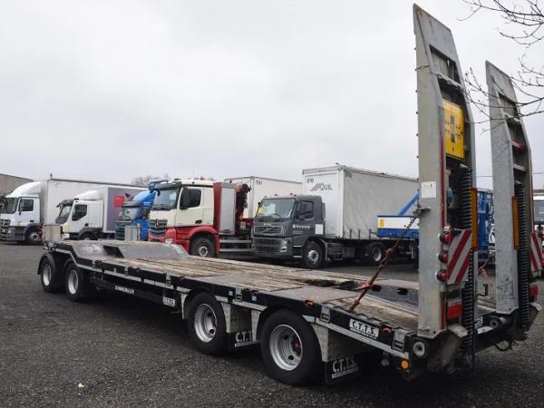 Dieplader 40 ton met rampen – Verbreders – haken voor machines vast te leggen – Totaal 40.000 kg – tarra 8200 kg –