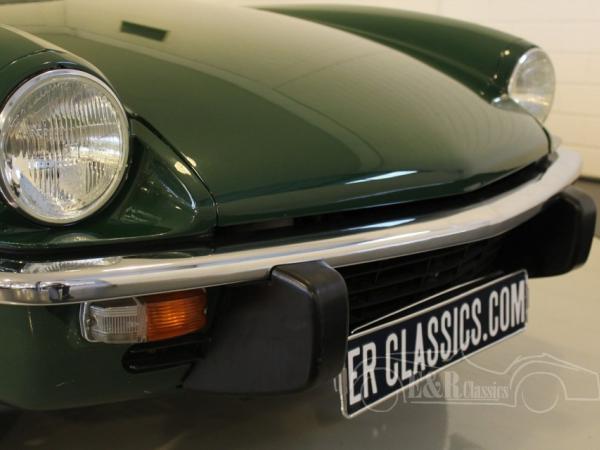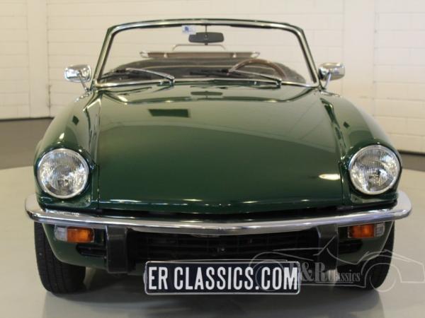 This is a 1973 Triumph Spitfire in colour British Racing Green with new black leather seats. Optically and technically in more than excellent condition. The car also has overdrive, extra oil cooler and chrome luggage rack.