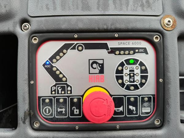 Kran: HIAB 195 E-5 + 1 ME X-HIPRO, Baujahr 2016, hinten am Fahrgestell