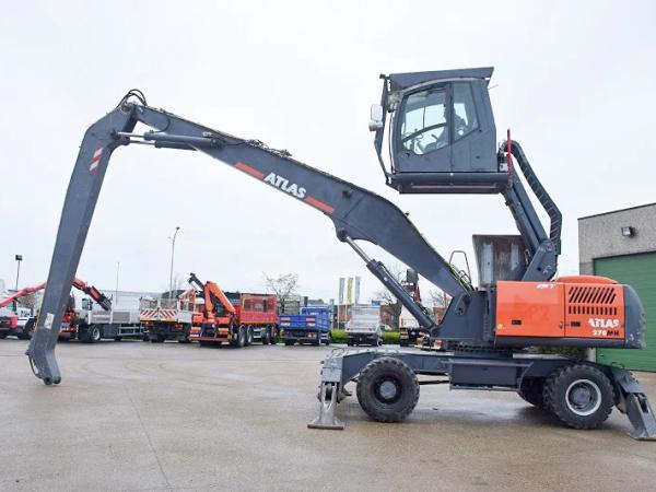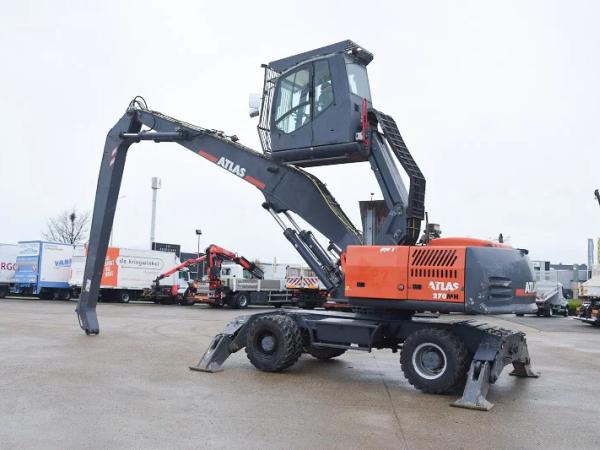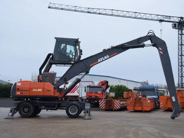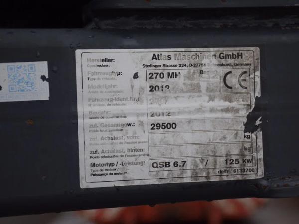 Overslagmachine Atlas 270 MH – Long reach Arm – met Grijp , Rotatie en Magneet Functie – Hydraulisch Cabine – 4 steunpoten – totaal 29.500 kg – 14.464 werkuren